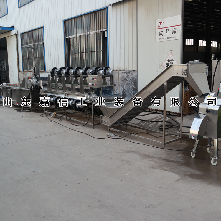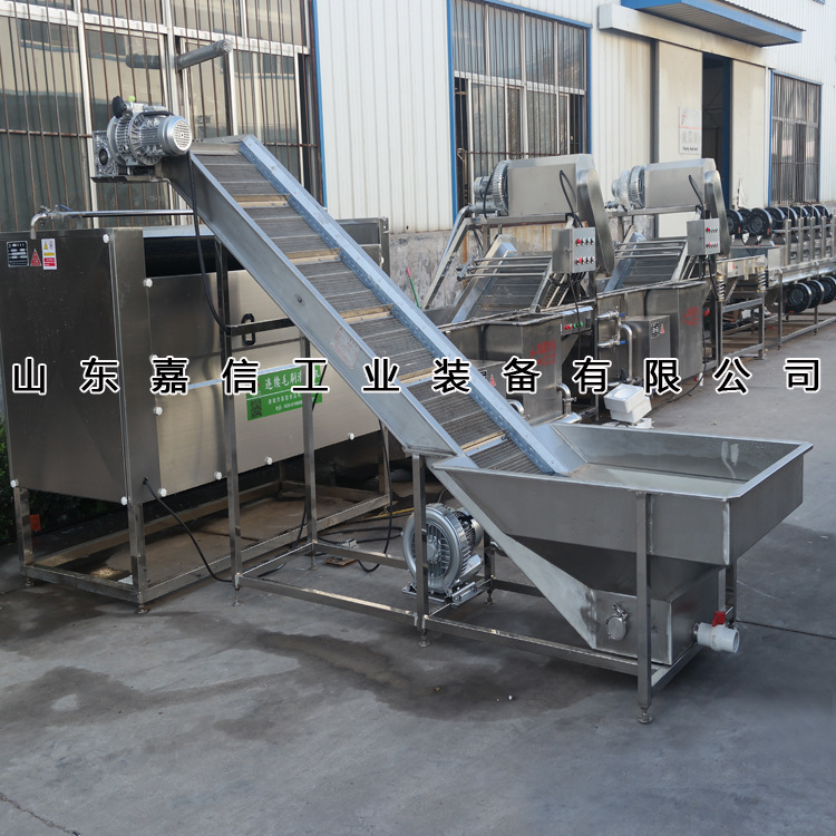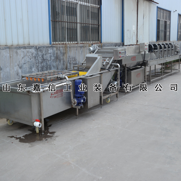 整線采用SUS304不鏽鋼材料製作,符合食品安全標準。適用於芹菜(cài)、韭菜、菠菜、大蔥、茼蒿、茴香、香菜(cài)等葉類蔬菜的清洗和風幹(gàn)瀝水。適合淨菜加工廠,大型食品配送中心等。