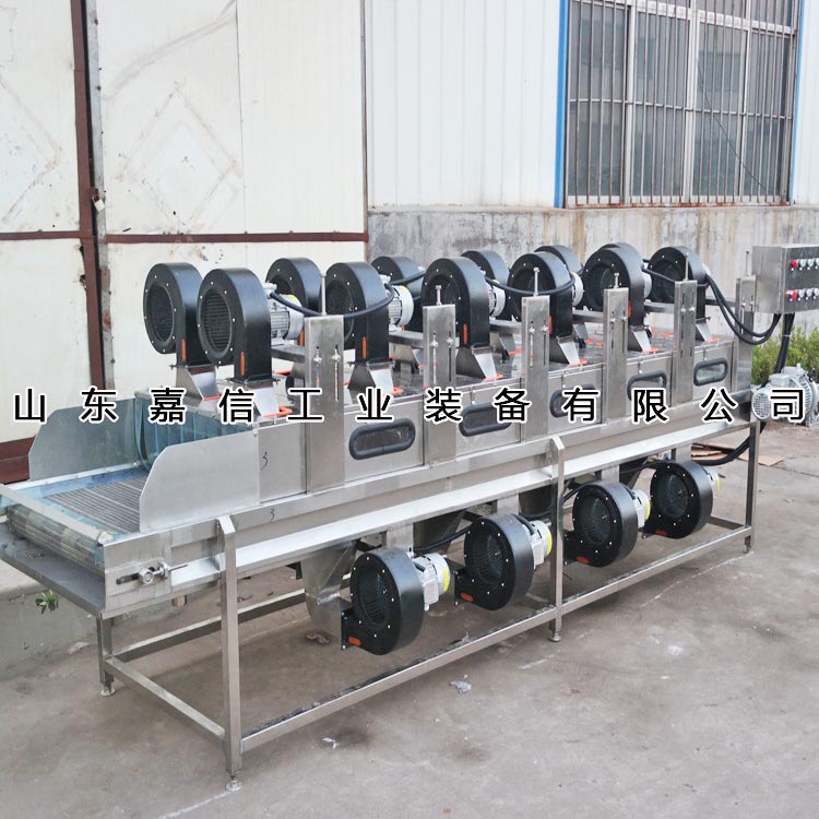 本機傳動采用調速減速電機,使產品風幹效果可(kě)調,網帶運行平穩。本機除風機、電機(jī)等標準件(jiàn)外,全部(bù)為304不鏽鋼製作。