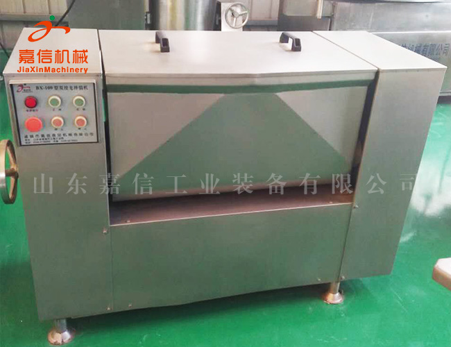 我公司生(shēng)產的拌餡機是參照國際同類產品的特點,同時結合我國肉製品加工工藝特點,自行研製開發的。該(gāi)機可進行餡(xiàn)狀、散(sàn)狀、醬狀物料的攪拌混合。經過攪(jiǎo)拌的餡粘度增加,富有彈性,特製(zhì)的扇形攪拌器,在攪拌的同時又對餡料(liào)起嫩化作用,與國內同類產品相比(bǐ)較可顯著提高工作效率(lǜ),是食品生產的一道重要工序。該機設有正逆運轉(zhuǎn),可滿足不同攪拌工藝的要求。接觸食品及外觀部分均采用不鏽(xiù)鋼材料,符合食品衛生要求。