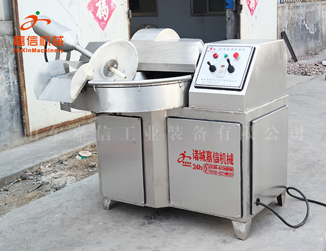 斬拌機利用斬刀高速旋轉的(de)斬切作用,將肉塊(kuài),碎肉,脂肪等主要原料(liào)精細(xì)的斬切成肉餡或肉泥,同時將其它原料如(rú)水,冰片,輔料一起攪拌成均勻的乳狀物。斬刀高(gāo)速(sù)旋轉,可以縮短運行時(shí)間,減少物料發熱量,保持餡料(liào)的天然色澤、彈性、出品率和(hé)產品(pǐn)的保質(zhì)期。