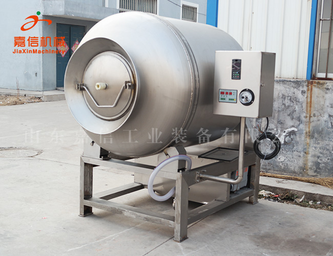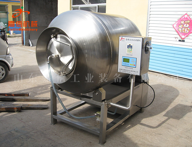 真空滾揉機是在(zài)真空狀態下,利(lì)用物理衝擊的原理(lǐ),讓肉在滾筒內上下翻動,相互撞擊、摔打,達到按摩、醃漬作用(yòng),使肉均勻(yún)的吸收醃漬,提高肉的結著力及產品的彈性;本機具有肺呼吸(xī)功能,讓產(chǎn)品在滾筒內膨脹、縮小了往複運動,改善了肉組織的結構,提高了切麵效果,增加了出品率。可以增強保(bǎo)水性,改善產品的內部結構。