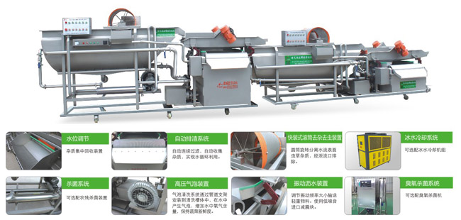 臥式渦流螺旋清洗+振動瀝水蔬菜清洗線,適合於的葉(yè)菜類,根莖類和醃(yān)製蔬果清洗,如:白菜,生菜,菠菜,醃製過的蘿(luó)卜,大頭菜等。