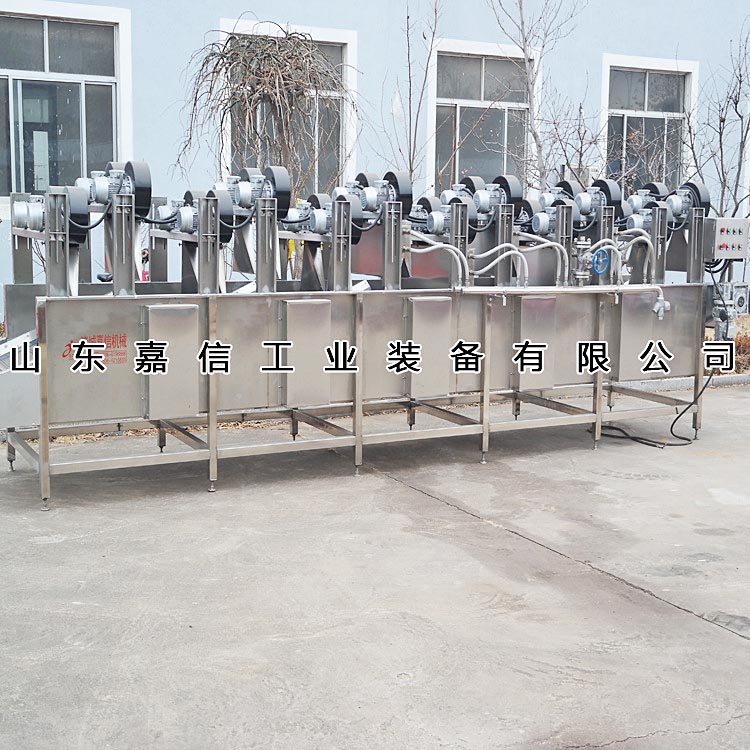 主要用於高低溫殺菌後,產品表麵油(yóu)垢(gòu)、汙漬的連續清洗及風幹,可按需(xū)要訂做,並可直(zhí)接並入裝箱線實現流水化生產。