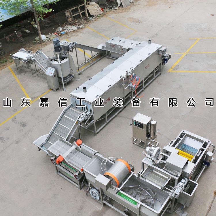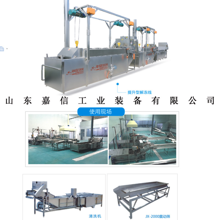 汆水鹵煮入味解凍(dòng)流水線中的設備采(cǎi)用SUS304不鏽鋼製作,溫度、速度可根據工藝要求設(shè)定,該機運行平穩,不鏽鋼網帶強度(dù)高,伸縮(suō)性小,不易變形,易保養,減少了勞動力。流水線中的各個單機,可根據客戶產量及要求製作。